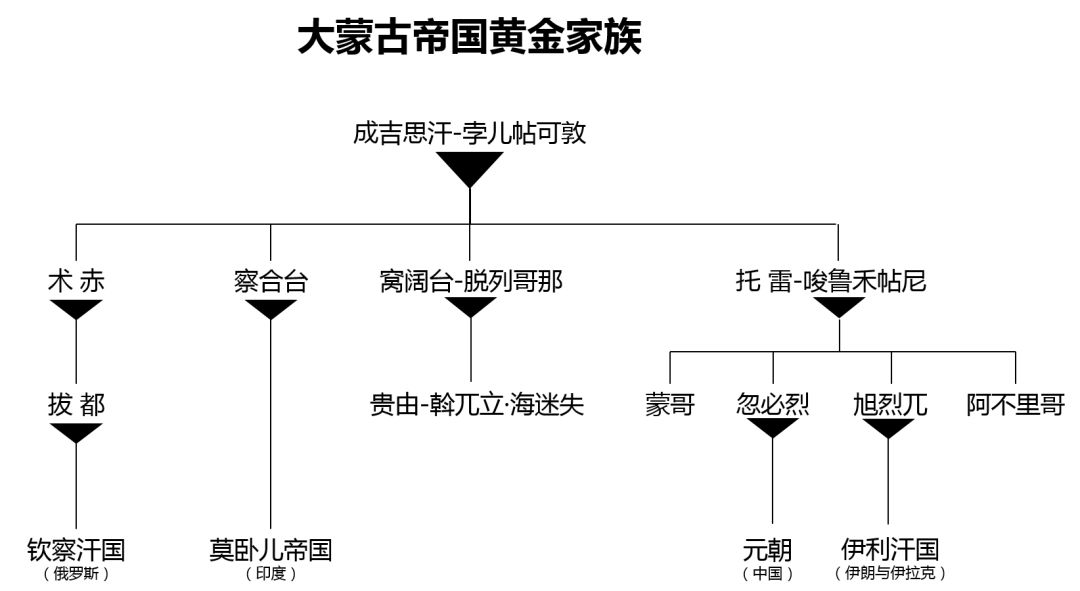 忽必烈登上汗位之时,蒙古帝国分为四块主要的政治统治区: